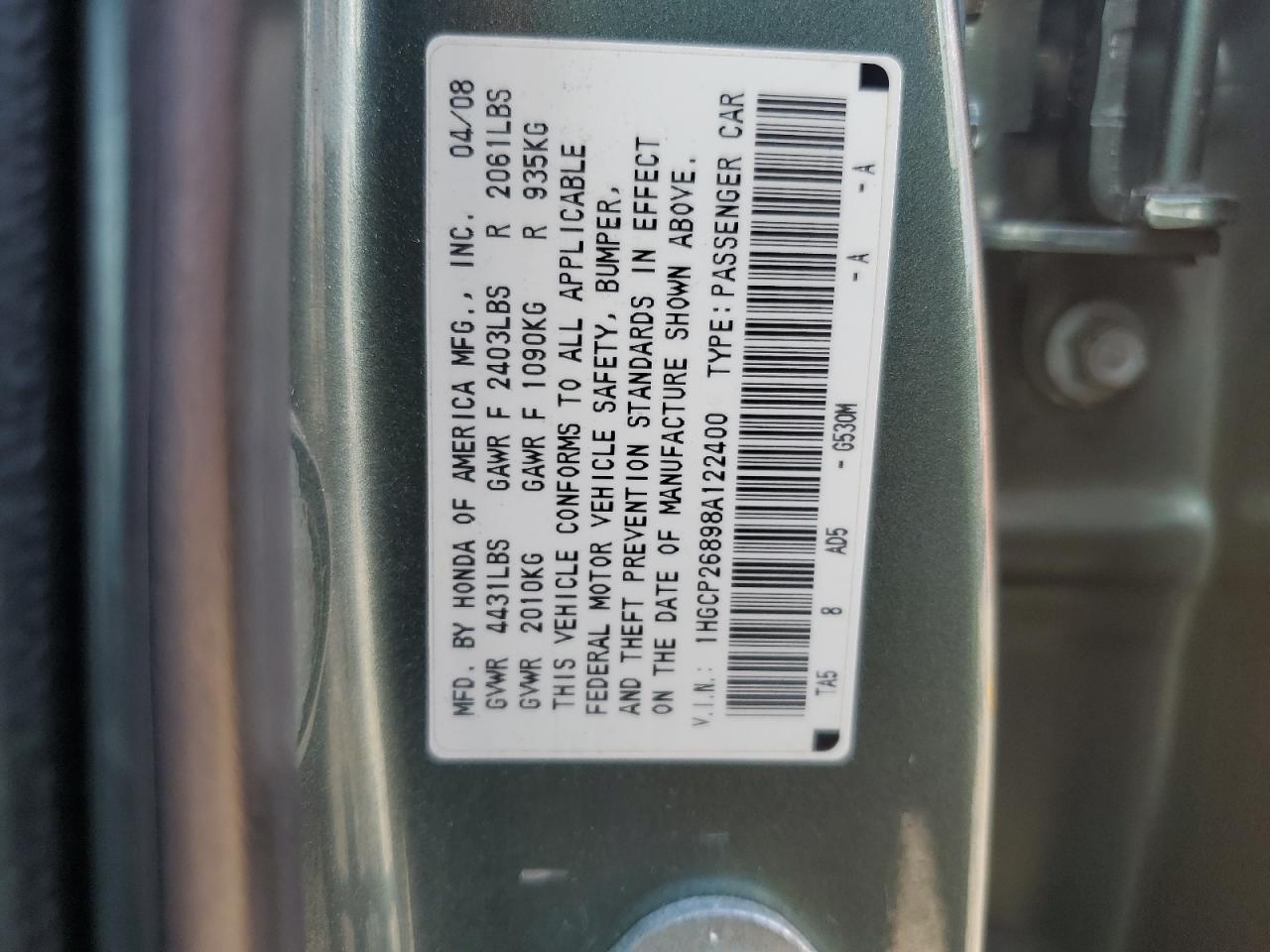 1HGCP26898A122400